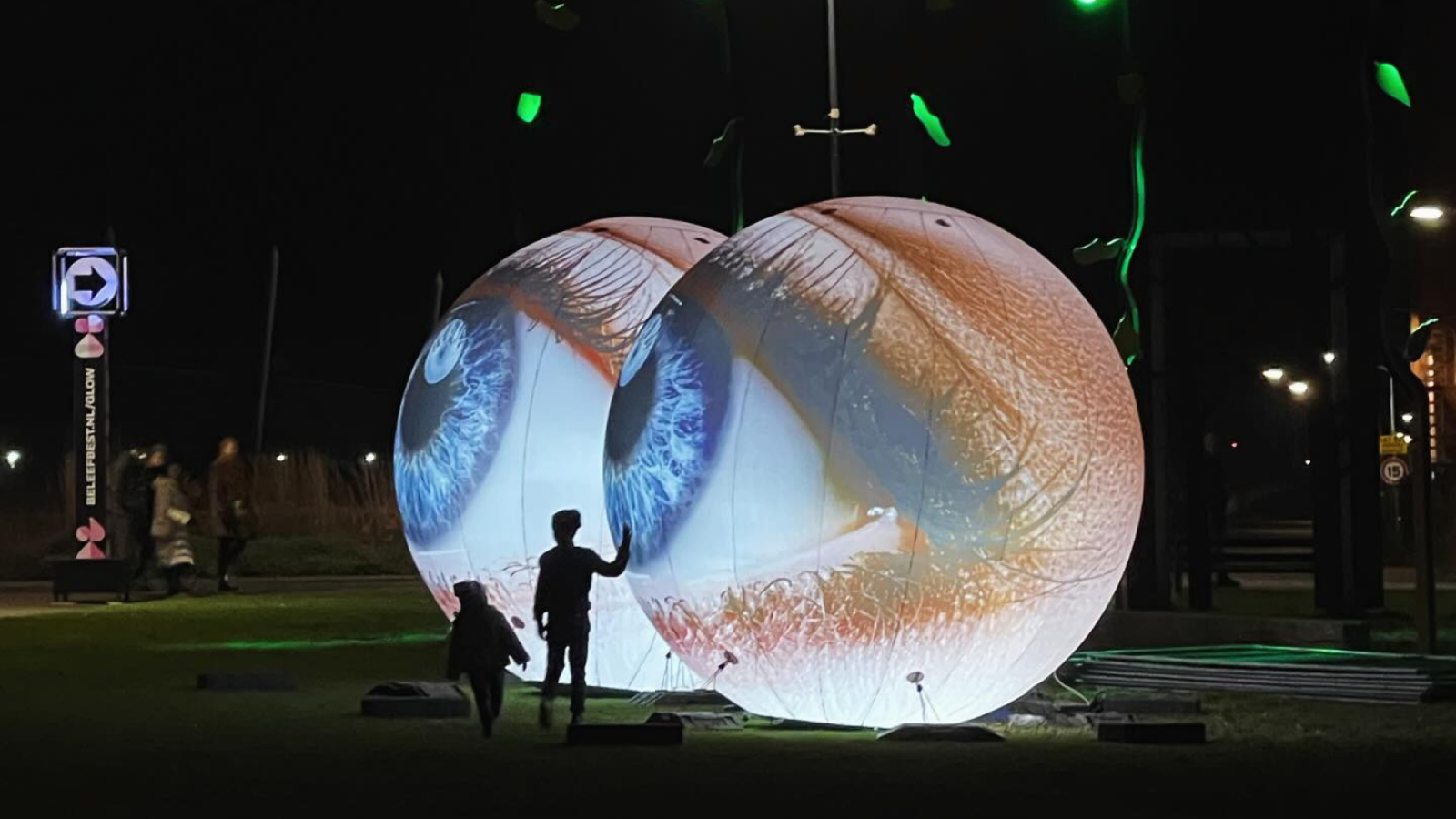 Valotaideinstallaatio Oculucis koostuu kahdesta monumentaalisesta valosilmästä, jotka leijuvat avaruudessa salaperäisinä ja hiljaisina. Ne eivät ole vain näön symboleja, vaan merkityksen kynnyksiä – ne tuijottavat katsojaa ja samalla kutsuvat pohtimaan, mitä “näkeminen” todella tarkoittaa.